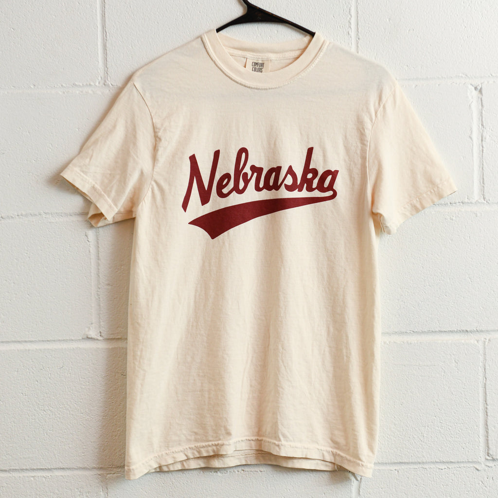 These are printed on a super soft Ivory Comfort Colors shirt. Printed with a cardinal ink. Think retro vibes but with modern comfort.